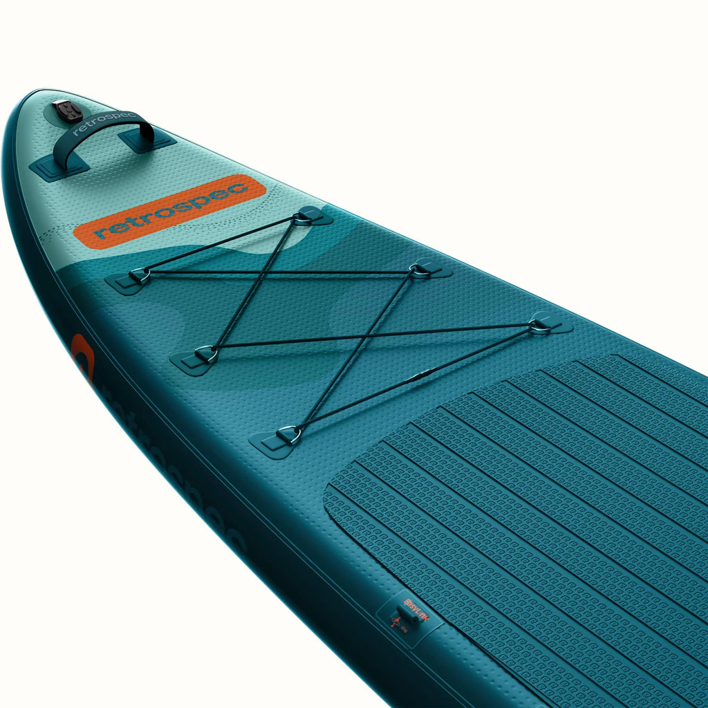 Most touring boards are narrow and require adaptation. Here, Retrospec maintains a comfortable width to remain stable. The pointed nose improves water penetration, the elongated shape helps maintain trajectory, and the platform remains reassuring even with weight. You gain performance without losing confidence.